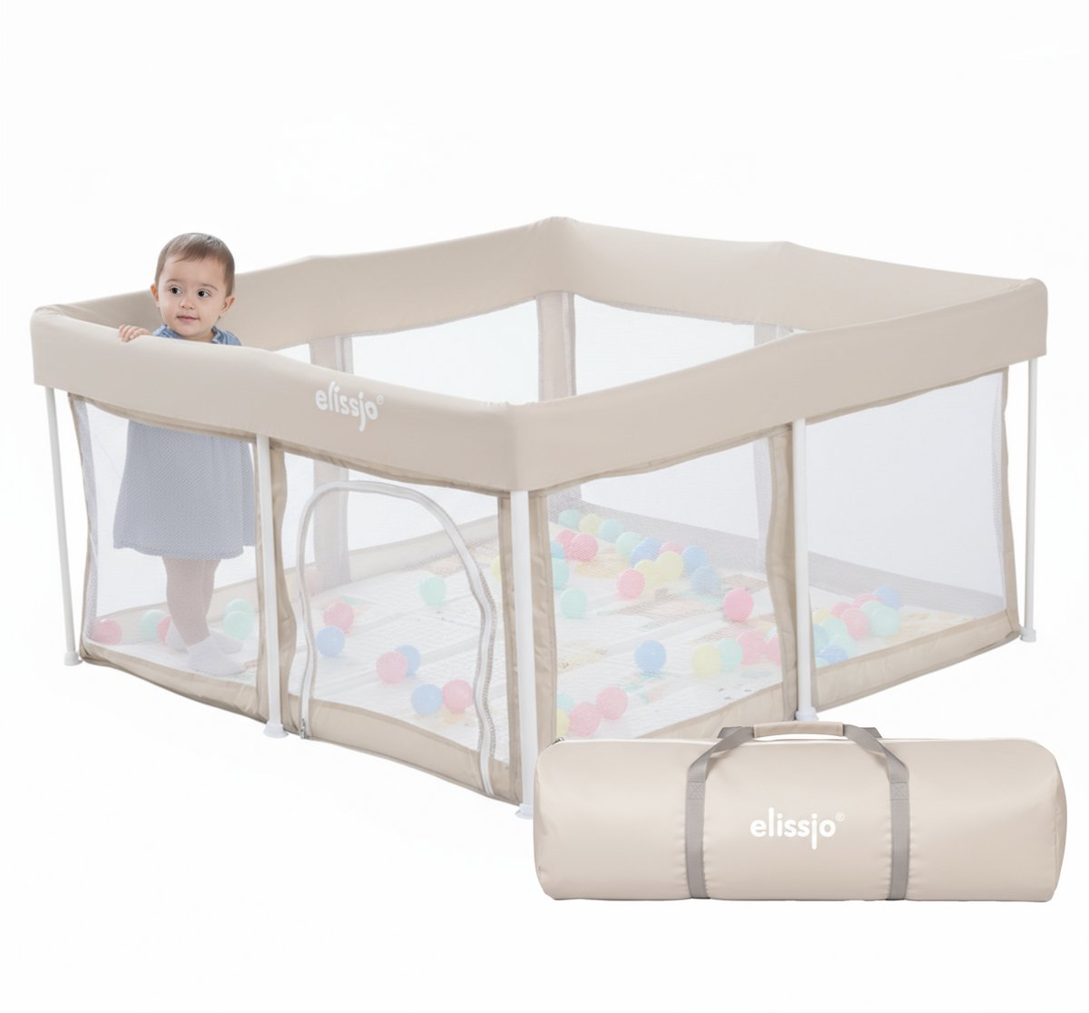 Elissio® – Grondbox Baby – Inklapbare Speelbox – Kruipbox – Kinderbox – Playpen Baby – 125x125x65 CM – Beige